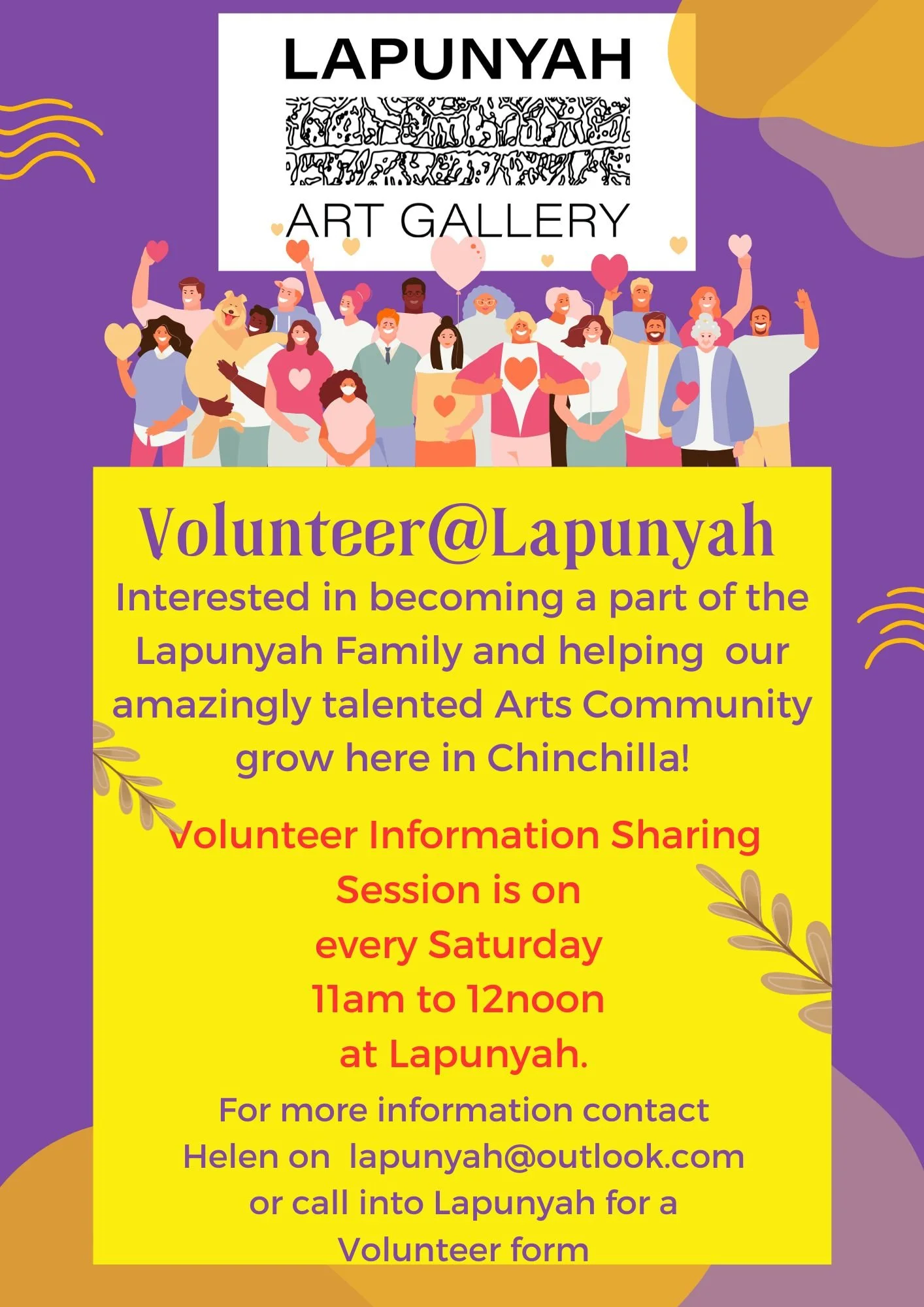 • Inform local artists and arts/crafts groups of opportunities available at Lapunyah